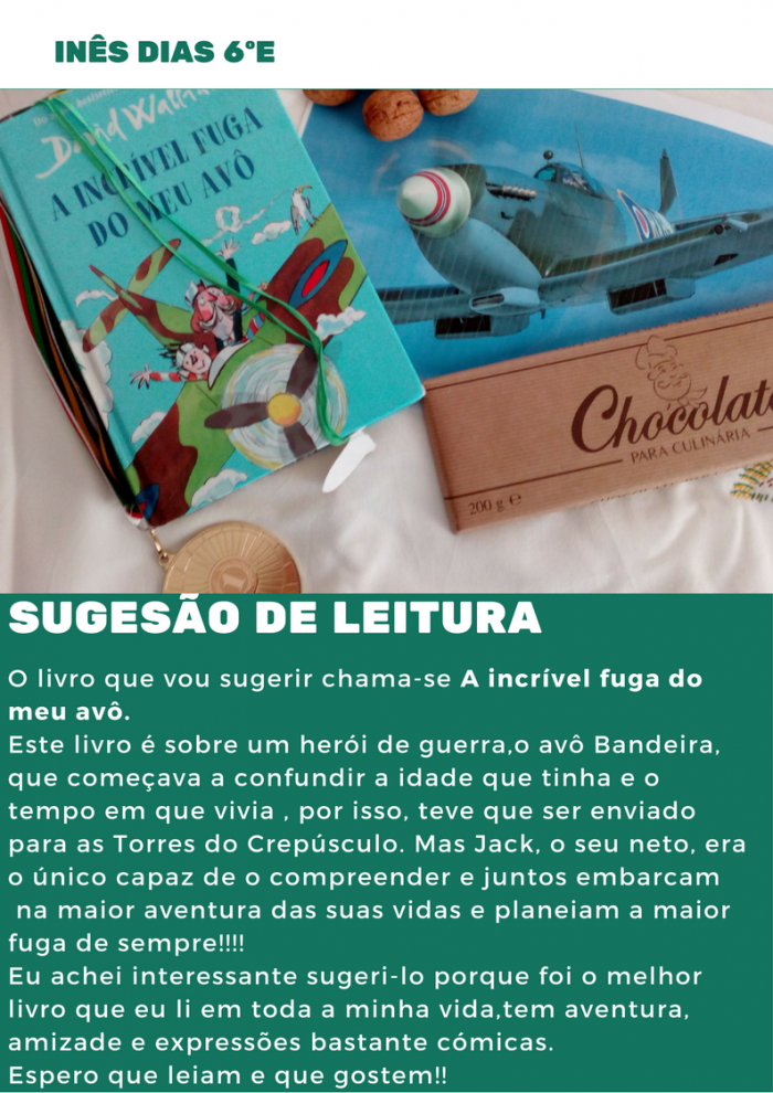 Este livro é daqueles que nós não queremos parar de ler, pois queremos sempre saber o que vem a seguir .Gostei imenso de o ler e também o recomendo imenso!”