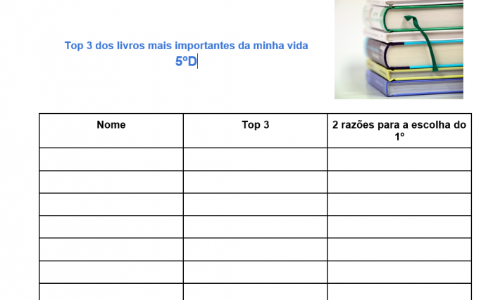 Top 3 dos livros mais importantes da minha vida 5ºD